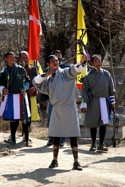 Archery in Bhutan: Learning to Embrace the Unexpected September 10th, 2013 • by Matt Holmes Our Bhutan hiking tour guests often ask if they will have the chance to watch a Bhutanese archery tournament during their visit to this Himalayan kingdom. Although they are perhaps slightly disappointed when I cannot guarantee such an occurrence, there are some special events that we cannot fix as a part of our itineraries. I do assure them, however, that it is fairly likely that they will happen across a village archery match along the trail. I learned this first hand, when I literally stumbled into an archery match during my visit to Bhutan—strolling right across the field as the opposing teams were firing arrows at their respective targets. Unbeknownst to me, I had entered the line of fire, and my only saving grace were some shouts from the spectators, giving me a warning signal as the arrows were lobbed overhead. Having emerged unscathed, this unexpected and surely memorable experience encapsulates why I love to travel. There are some things you should know about how archery is executed in Bhutan, which make it easy to understand why our guests are constantly inquiring about the opportunity to see such an event unfold: Archery is a centuries-old tradition in Bhutan, and now a national sport boasting an Olympic team.A Bhutanese archer wearing his Gho. Archers must wear traditional dress, called a Gho, and knee-high socks. Targets are set about 140 meters apart, the length of one and a half football fields. Every time the target is struck, the opposing team performs a traditional song and dance, typically describing themes of love, enlightenment, and karma. Getting struck by an arrow is a risk you run as a participant, and archery injuries are the most common reasons for hospital admissions in Bhutan. Since Bhutan is a matriarchal society, prizes are intended for an archer’s wife and daughters, and may even include household items such as washing machines, refrigerators, and microwaves.Scenes from a village archery match. Are you curious to visit and perhaps see such a spectacle unfold? Join Boundless Journeys in the kingdom of Bhutan, where our guides are superb at taking advantage of the cultural events that seem to crop up in every little village and valley in the country– archery included. And remember to embrace the wonder of travel – spontaneously arising events that you do not expect to be a part of your journey. This is what we strive to do in order to provide our guests with outstanding experiences. About Boundless Journeys Boundless Journeys is an award-winning small group adventure tour operator. With a diverse collection of locally guided, small group itineraries and Private Collection trips around the world, Boundless Journeys offers “The World’s Great Adventures.” The adventure trips for 2-16 guests are active, ranging from leisurely cultural explorations and wildlife safaris to challenging trekking ― with plenty of easy to moderate walking and sea kayaking in between.