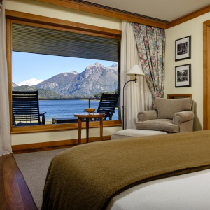 Originally built in 1940 in an area surrounded by the Cerro Lopez and Tronador mountain peaks and the Moreno and Nahuel Huapi lakes, this 5-star hotel offers historical charm and exclusive luxury. Amenities include an 18-hole golf course, marina, beach, solarium, heated indoor and outdoor infinity edge swimming-pools, spa with sauna, and fitness center.