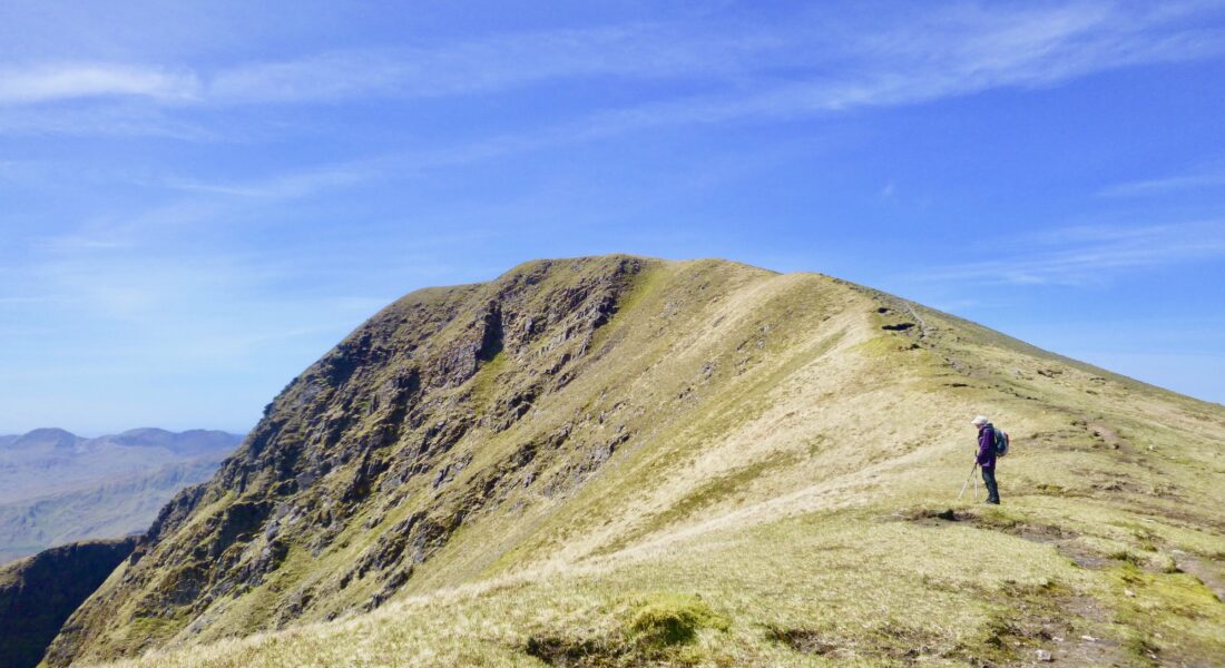 This morning the adventure continues along the Wild Atlantic Way. You will head to Ireland's westernmost peninsula, The Dingle Peninsula where the first hike will start from one of Ireland's highest mountain passes, The Conor Pass, offering incredible views of the surrounding countryside, mountains and corrie lakes as well as Atlantic islands.