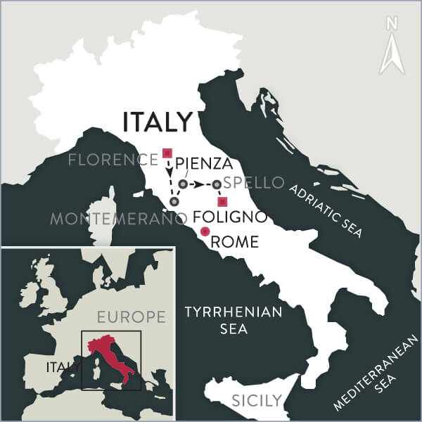 Following our tour of Assisi, you will have time to enjoy lunch in town before a short drive to the train station. From here you can make train connections to Rome, or other destinations throughout Italy, to catch flights home.
