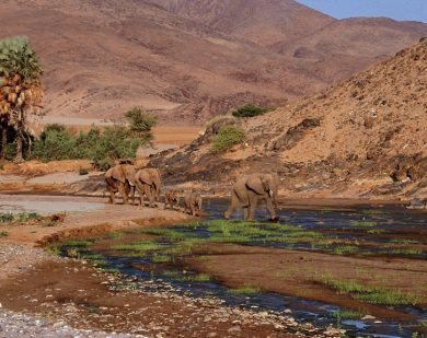 Formerly know as the Kaokoveld, the Kunene Region in northwest Namibia is one of the harshest environments on Earth, with ancient valleys, endless vistas across stark plains, craggy ridges, and a desolate coastline. As one of the least visited areas in Namibia, the Kunene remains an undiscovered gem, for those who come here are met with a diverse range of wonderfully adapted desert wildlife such as the black rhino, elephant, giraffe, springbok, and the Hartmann’s mountain zebra. This seemingly inhospitable land is also home to the Himba, an indigenous people with an estimated population of 50,000.