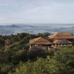 Situated overlooking the magnificent Virunga volcanoes and the shimmering twin lakes of Ruhondo and Burera, Virunga Lodge is an eco-lodge consisting of 10 elegant and comfortable stone and tile bandas set along the hillside and a main lodge. Each cottage offers a spacious bedroom area, ensuite bathroom, and private terrace featuring spectacular views of either the lakes or the Virungas.