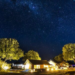 A classic tented camp in one of the best game viewing areas Hwange National Park, Davison’s Camp features eight comfortable tents and one family unit, all with ensuite bathroom, and views overlooking an open plain and waterhole. The main area offers a lounge, bar, and dining room which leads onto a fabulous deck and a campfire area. A pool looks out over the waterhole, while a small upper deck is an ideal location from which to watch wildlife by day and startgaze by night.