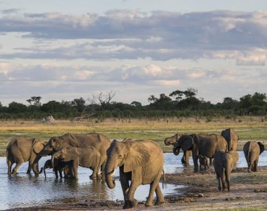 Situated on the easternmost edge of the Kalahari Desert and about one hour south of Victoria Falls, Hwange National Park is the largest park in Zimbabwe and one of the densest havens for wildlife in Africa. Because of its blend of habitats that range from forests to desert sands, Hwange features a variety of wild animals rarely found in one region — where lion, leopard, cheetah, honey badger, spotted hyena and wild dog are the often-sighted predators among huge herds of elephant, buffalo, zebra, and sable, as well as a large concentration of giraffe.